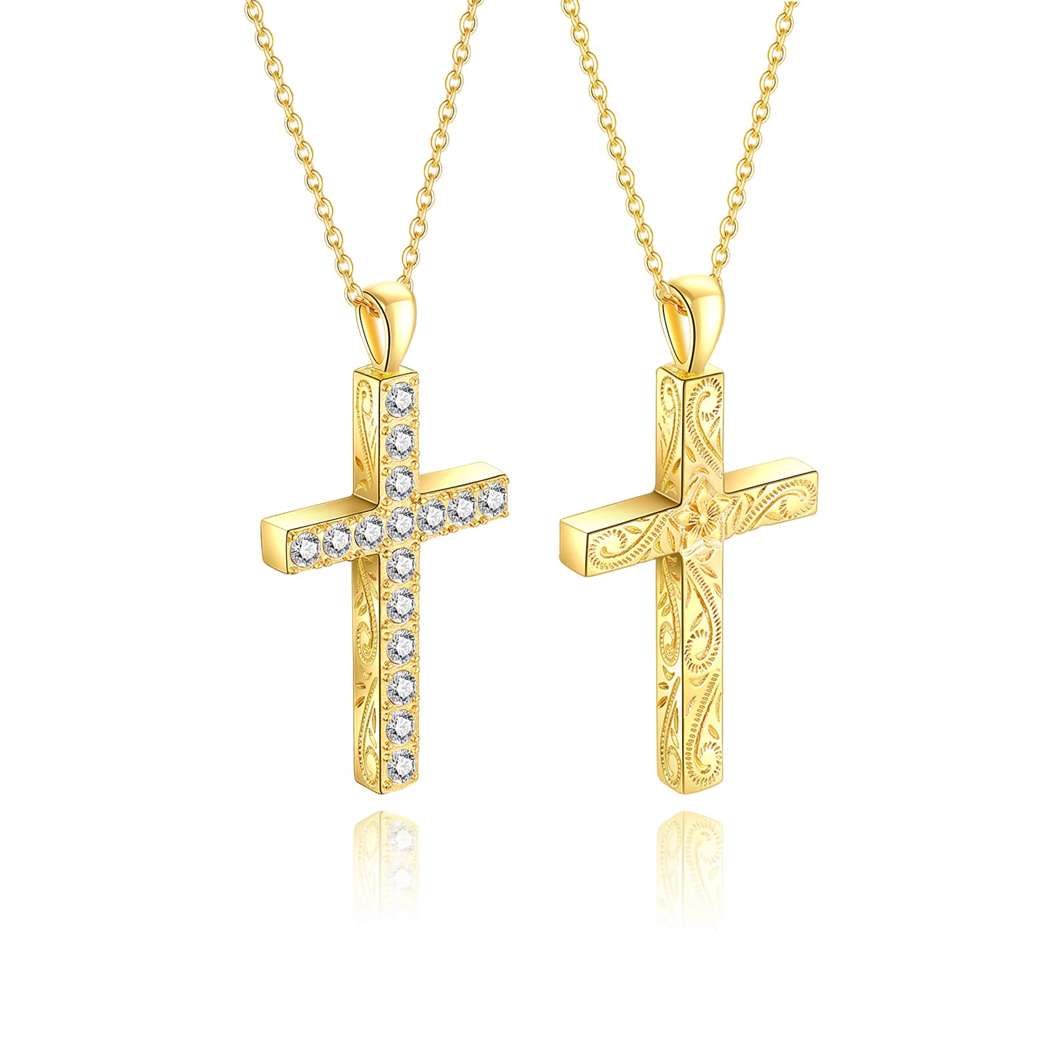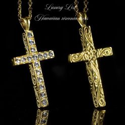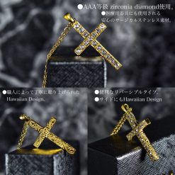 クロス ネックレス 国内メーカー 316L 3連 24K(24金) スワロフスキージルコニア GP 【 24k pvd gold 】金属アレルギー対応 PVDコーティング 正規スワロフスキー使用 メンズ レディース 十字架 クロスネックレス ハワイアン